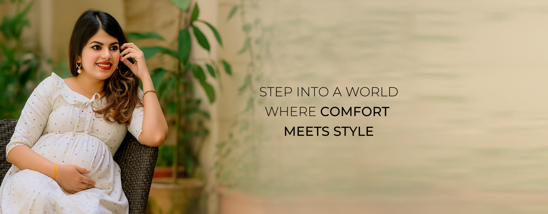 Golden Printed Maternity Short Dress - Onam Ellie Offwhite