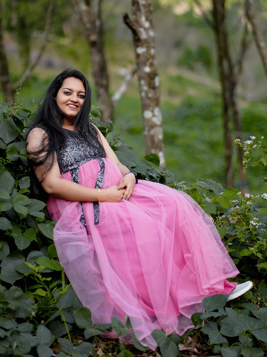 • Baby Shower Ruffled Gown- Pink & Black