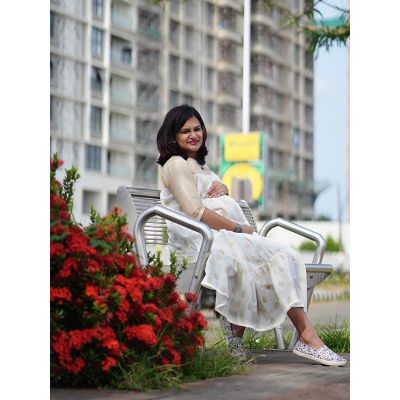 Golden Printed Maternity Short Dress - Ellie Offwhite Golden Printed Maternity Short Dress - Ellie Offwhite