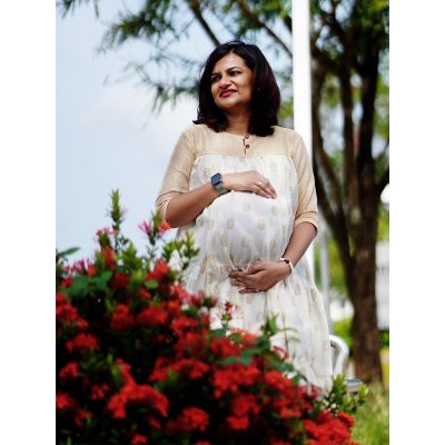 Golden Printed Maternity Short Dress - Ellie Offwhite
