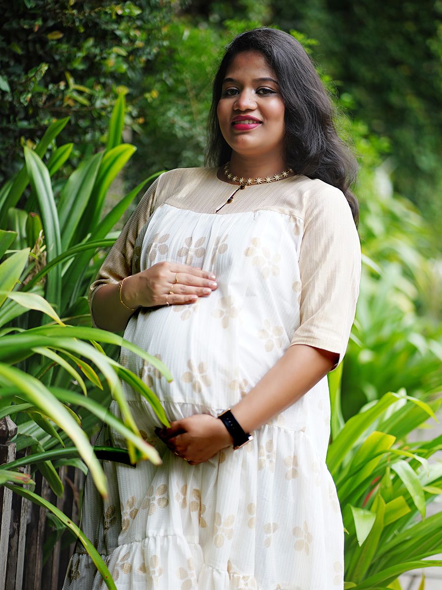 Golden Printed Maternity Short Dress - Onam Ellie Off white 1 Golden Printed Maternity Short Dress - Onam Ellie Off white 1