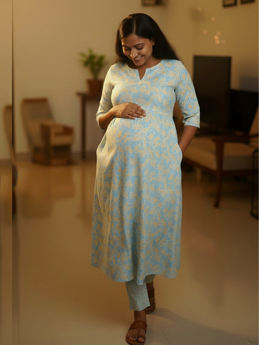 Designed thoughtfully for motherhood, the kurta includes concealed zip openings on both sides to make feeding simple, discreet, and convenient.
