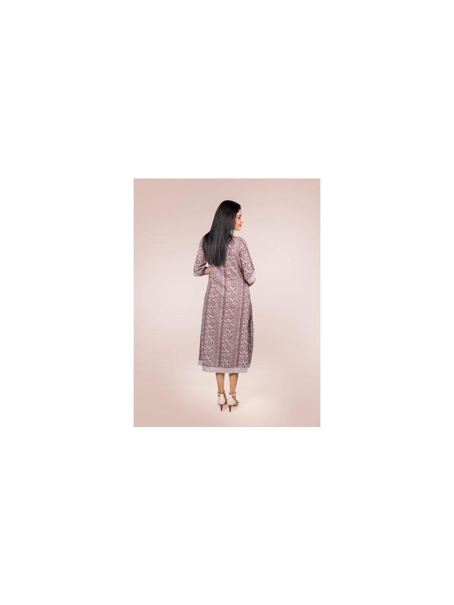 A Printed rayon asymmetrical A line dress with round neck and 3/4th petal sleeve. Concealed zip opening is attached on both sides are suitable for both maternity and nursing period.