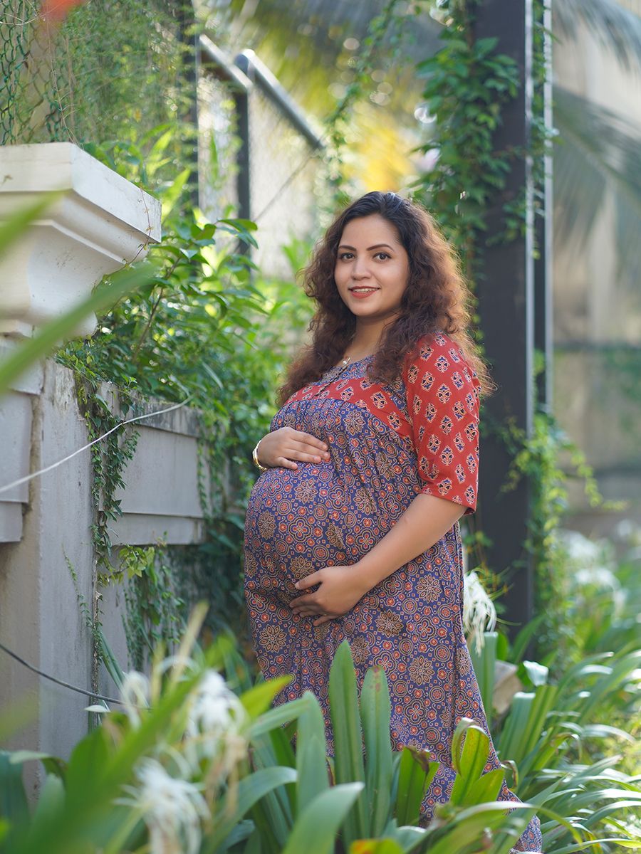 Maternity Short Dress Ajrakh-Nina(Blue) Maternity Short Dress Ajrakh-Nina(Blue)