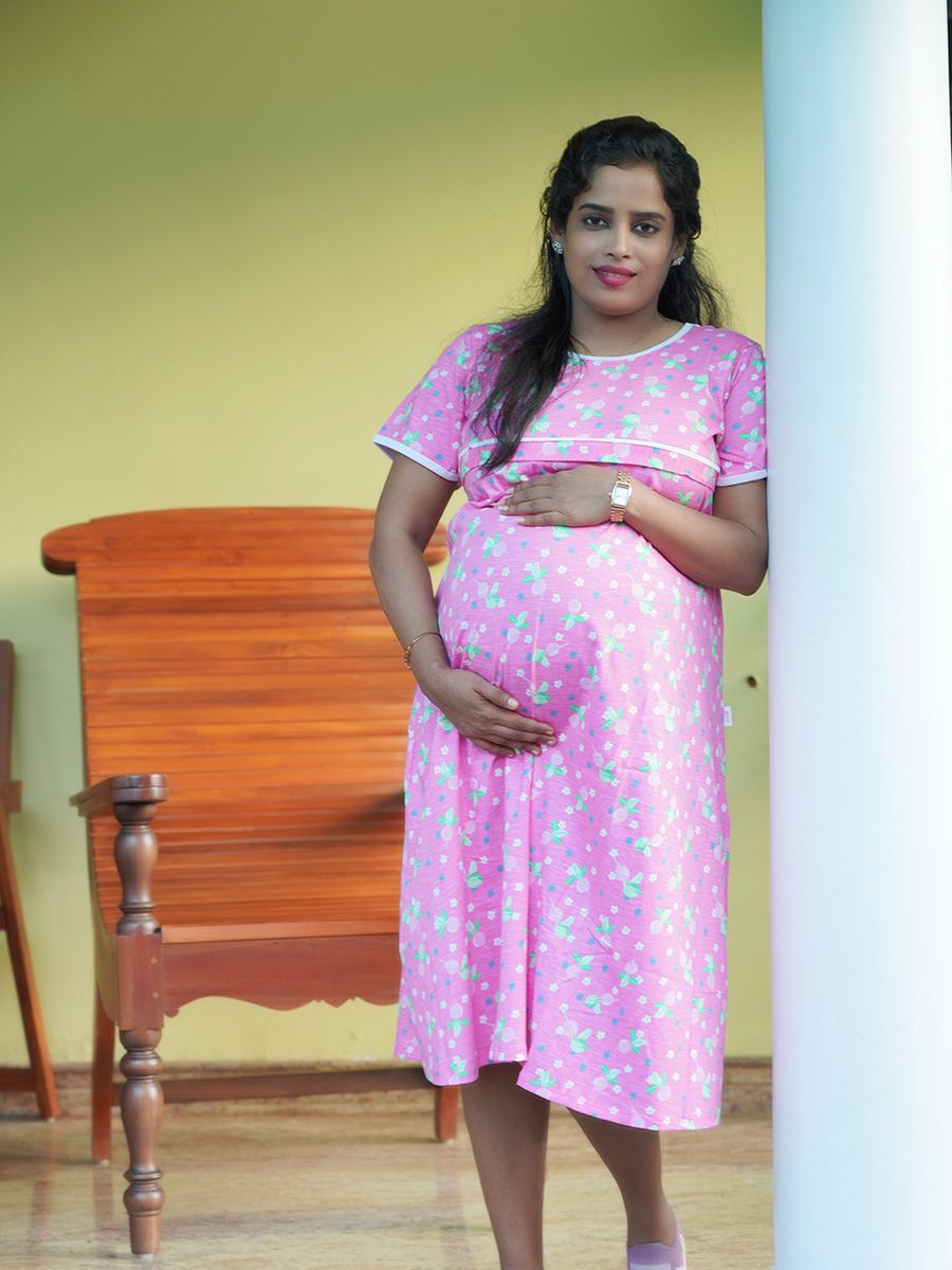 A simple knitted short dress without zip and easy feeding with simply pulling up the cape portion . It has a round neck and an extended sleeve. The dress gives a pretty look and a comfortable feel.