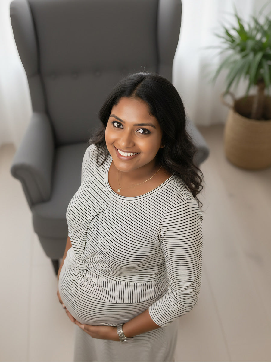 The round neckline includes a chic keyhole detail, while the twisted knot at the waist adds elegant touching that enhances shape and comfort. With full-length sleeves and a breathable, flexible fit, this dress keeps you cozy without compromising on style. Designed zip-less for easy wear and all-day comfort, it’s an ideal choice for pregnancy, outing, or casual maternity styling.