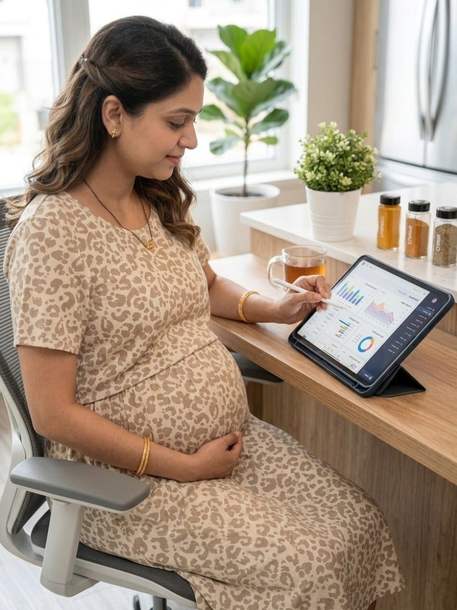 With its calf-length silhouette and convenient side pocket, this dress is perfect for daily wear, hospital visits, casual outings, and comfortable home wear for nursing moms.